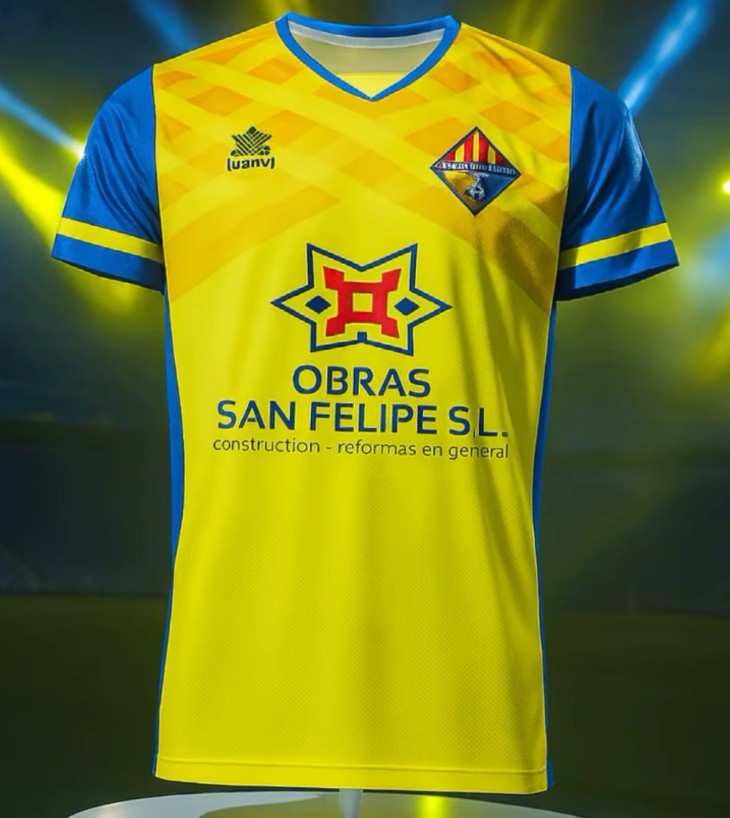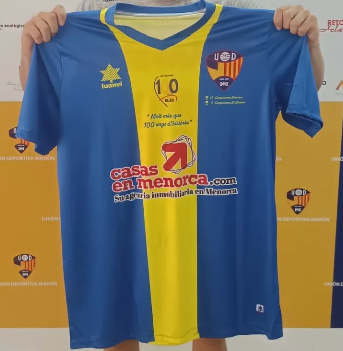 Let’s start with, in my opinion, the most iconic kit on the island, UD Mahon. One of the islands most historic clubs play in a wonderful blue shirt with yellow bar through the middle, and you know whenever you see this kit, that it’s UD Mahon.
