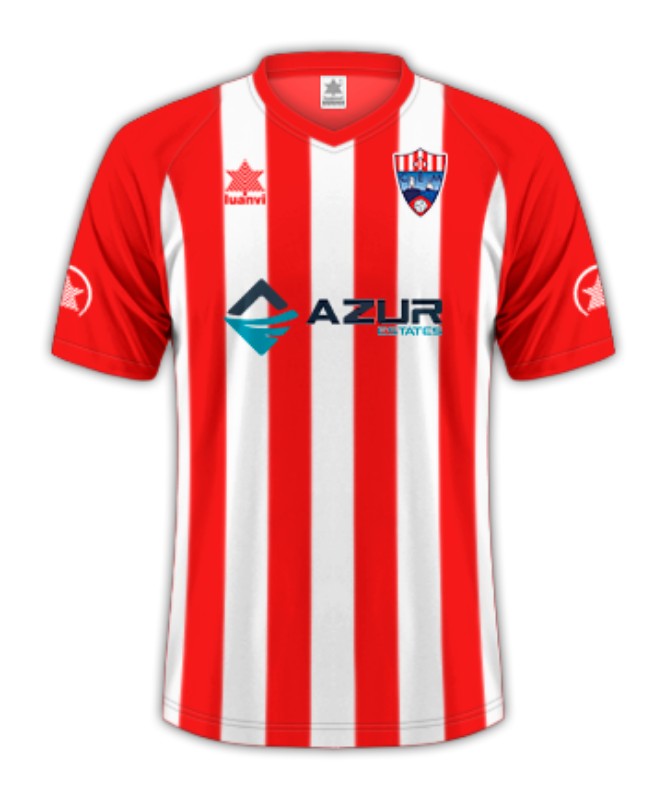 Not sure if this is subconscious or not because CE Mercadal are the island’s top team and playing at a higher level, but this shirt just oozes a bit of class and professionalism. Red and white stripes, strong red sleeves, prominent club crest which is again a fairly unique shape. Sponsor isn’t too garish. I’d buy this.